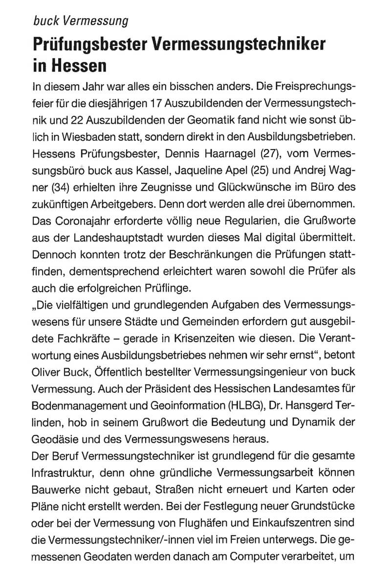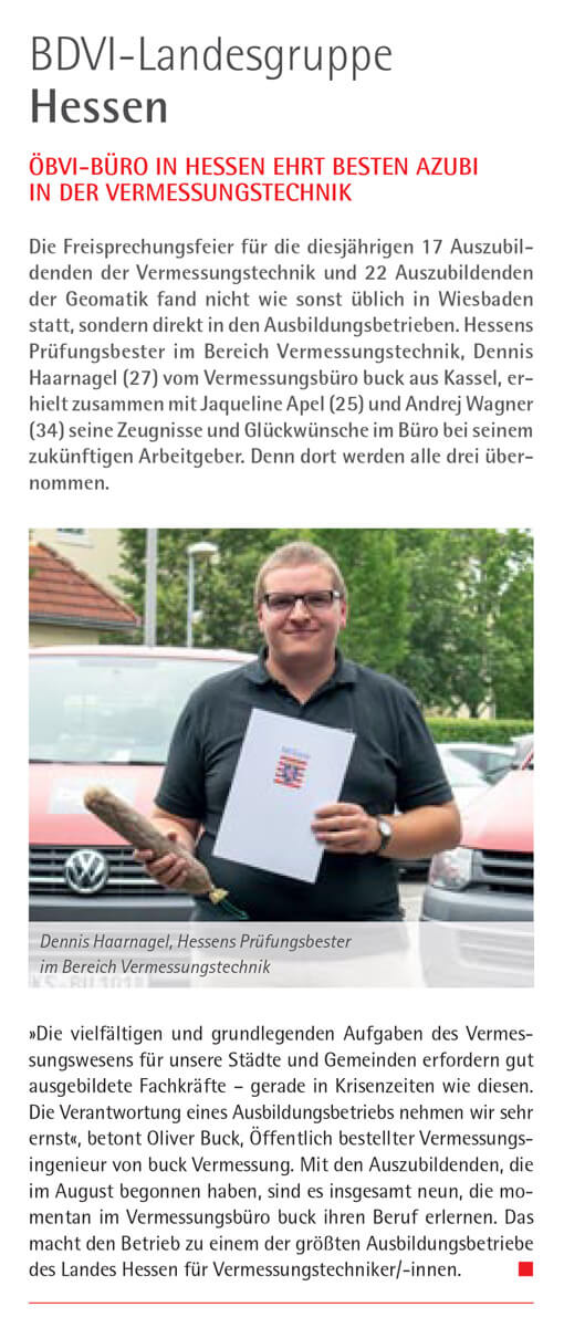 An dieser Stelle finden Sie den Pressespiegel von buck Vermessung. Es handelt sich dabei um eine Zusammenstellung aktueller Artikel und Beiträge aus verschiedenen Medienprodukten wie Zeitungen, Zeitschriften oder Online-Publikationen.